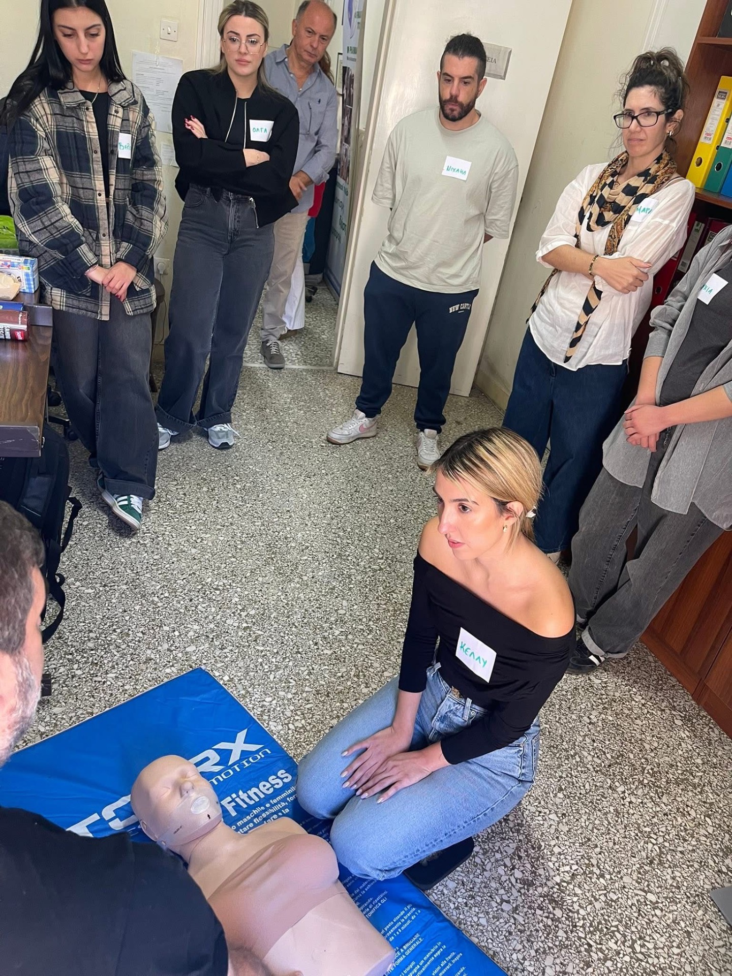 Η 5ωρη εκπαίδευση περιλάμβανε θεωρητικό και πρακτικό μέρος, καλύπτοντας ενότητες όπως ΚΑΡΠΑ, η χρήση απινιδωτή,αντιμετώπιση αναίσθητου θύματος, αντιμετώπιση πνιγμού, αντιμετώπιση πνιγμονής, επιληψίας και αγγειακού εγκεφαλικού επεισόδιου,ψυχολογικού μηχανισμού διάσωσης και Νομικών θεμάτων, μέσα από το οποία οι συμμετέχοντες έμαθαν να αναγνωρίζουν, να αντιδρούν και να δρουν αποτελεσματικά σε καταστάσεις που μπορει να απειλήσουν τη ζωή.